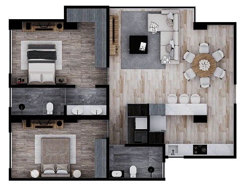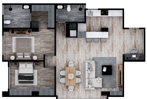 Hunah tiene tres modelos a elegir. Departamentos de 2 recámaras desde 96 m². Diseñados para reflejar el ritmo de una ciudad vibrante, donde lo funcional y lo moderno se viven en cada momento.